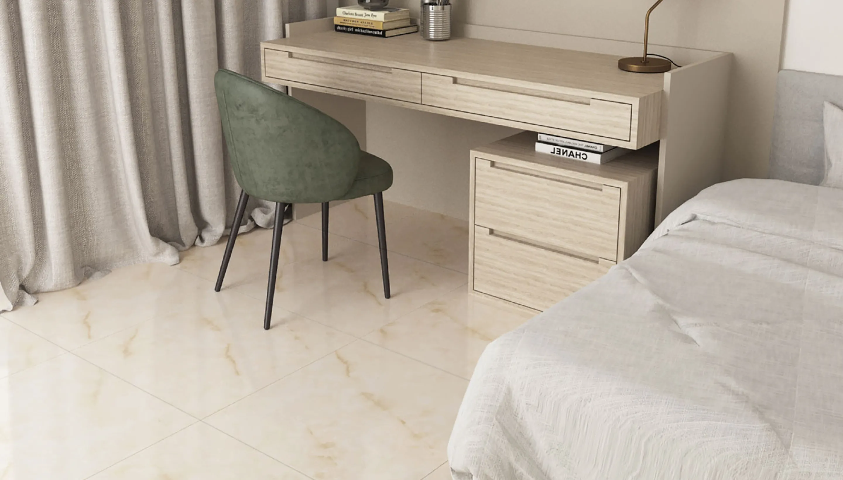 Scandinavia tiles feature warm creamy tones with delicate marble details that create a bright and tranquil atmosphere. The glossy surface enhances natural light, bringing a sense of simplicity, balance, and timeless comfort.
