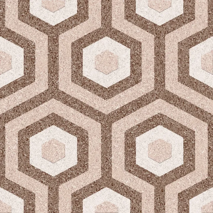 Rafa tiles feature bold hexagonal patterns with layered color accents that create visual depth and movement. The dynamic geometry adds character and energy, making interiors feel expressive, stylish, and confidently modern.